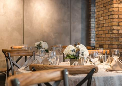 The newly developed event space features exposed brick walls juxtaposed exposed concrete surfaces, and 16-foot ceilings. It is easily transformed in a number of configurations and can host events or gatherings of any size up to 300 seated guests.