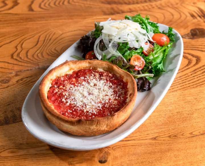 Lunch. Special. $10.99 Daily until 3pm at select locations Personal Deep Dish or Personal Thin Crust Pizza Choice of: Cheese, Pepperoni or Sausage Or pick any sandwich for an additional fee Choice of side: House Salad, Caesar Salad, Cup of Soup, Regular or Parmesan Garlic Fries ORDER NOW